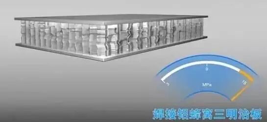 基于以上特点,焊接铝蜂窝三明治板具有良好的工艺性能,用通用加工设备即可实现产品化,可选择的工艺方法更多,成本更低。